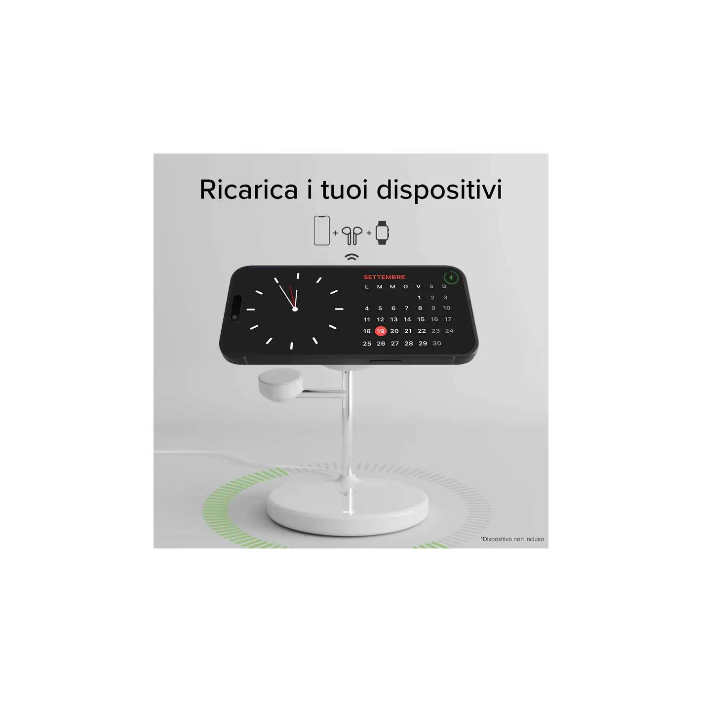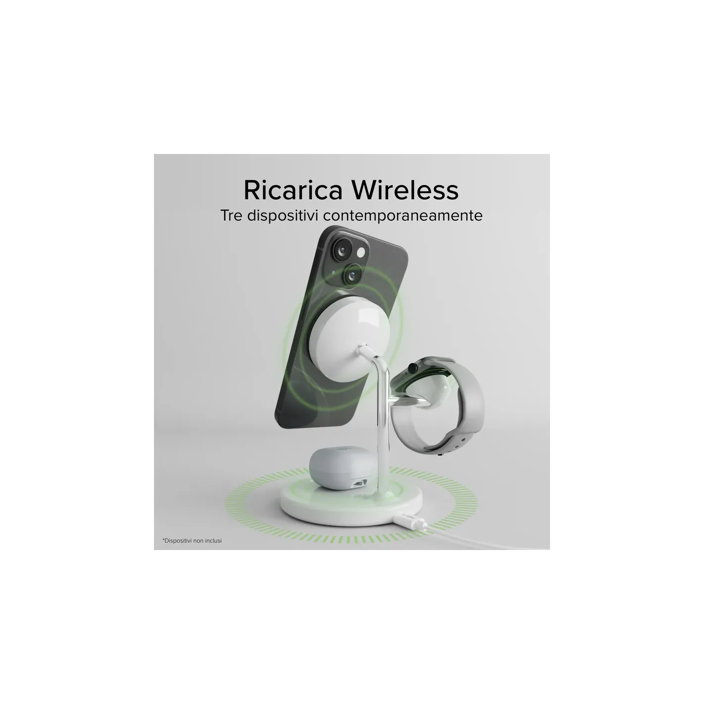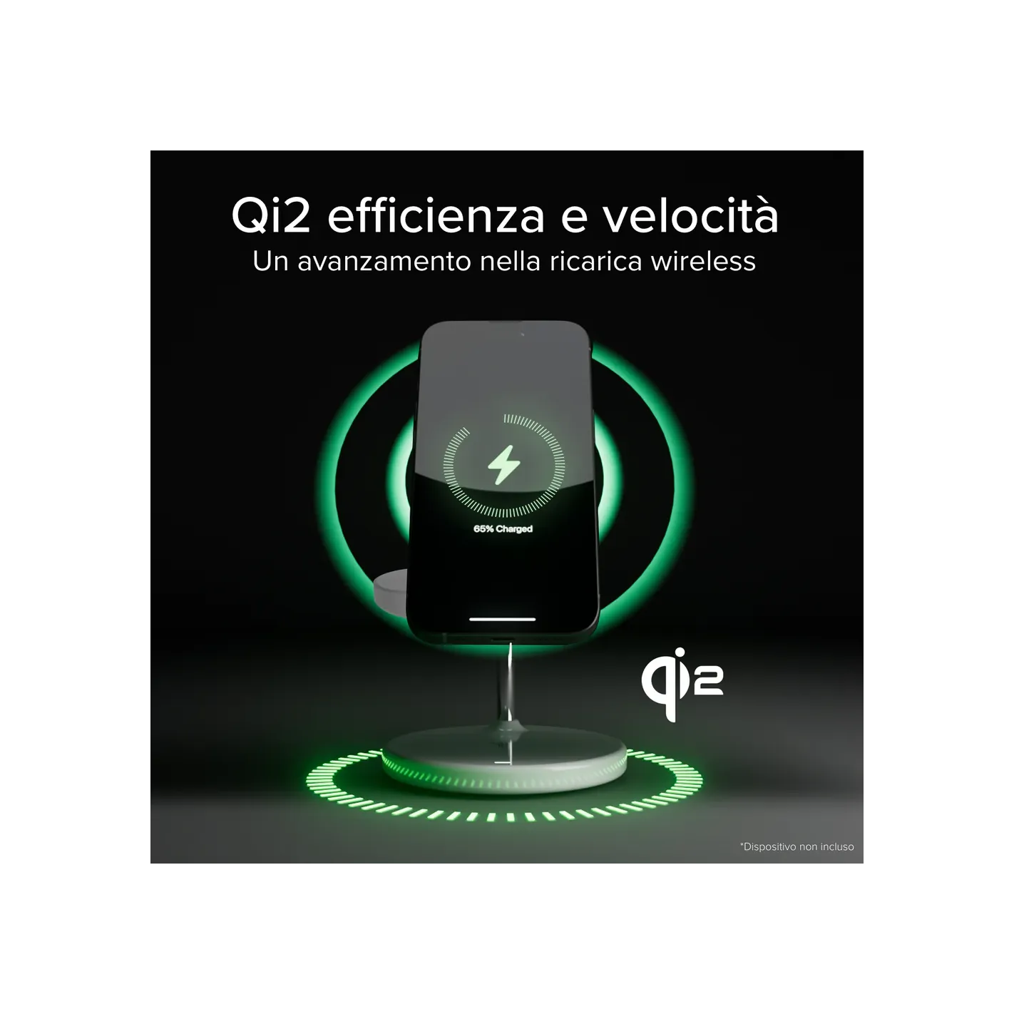 Dotata del sistema di ricarica wireless Qi2, la stazione garantisce un allineamento magnetico ottimale grazie alla tecnologia Magnetic Power Profile. Questo sistema innovativo non solo migliora l'efficienza energetica, ma accelera i tempi di ricarica e semplifica l'uso quotidiano, grazie al posizionamento intuitivo e immediato dei dispositivi.