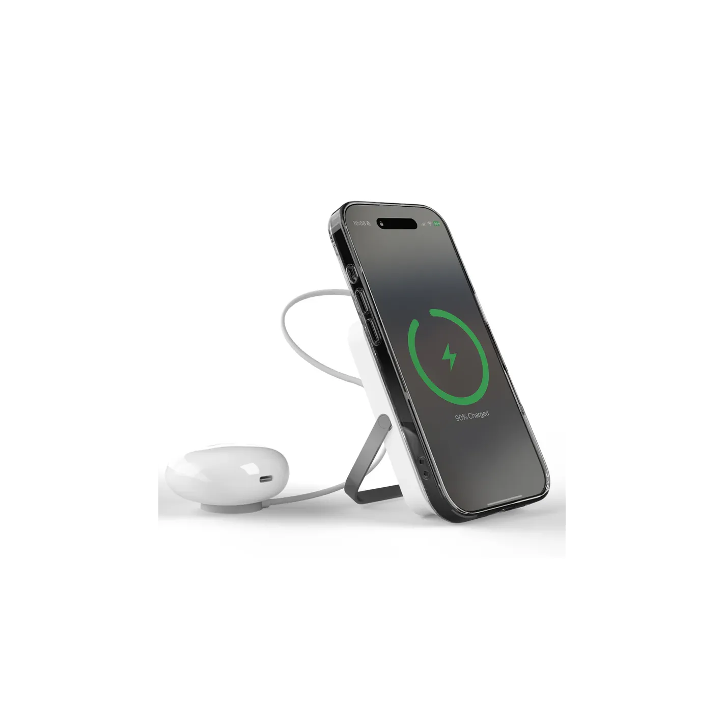 Stand Power Mag è dotato di una porta USB-C con capacità di input e output, necessaria alla ricarica della base stessa ma che può essere utilizzata anche per caricare via cavo uno smartphone o altri dispositivi con una potenza di 20W. La porta USB-C può essere utilizzata mentre si carica magneticamente lo smartphone, permettendoti di caricare contemporaneamente 2 device!