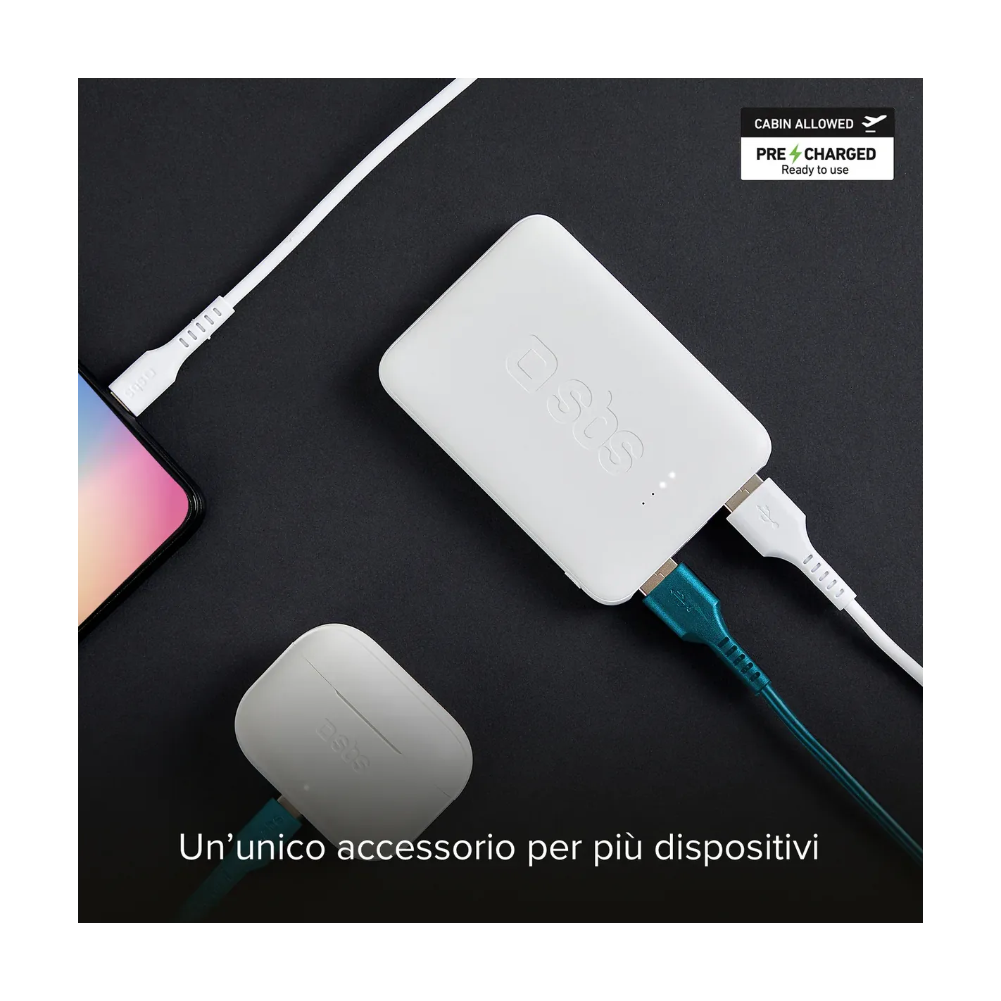 La porta USB-C permette di ricaricare un device attraverso un cavo con connettori USB-C e, attraverso il cavo incluso, potrai usarla anche per alimentare il powerbank quando scarico.