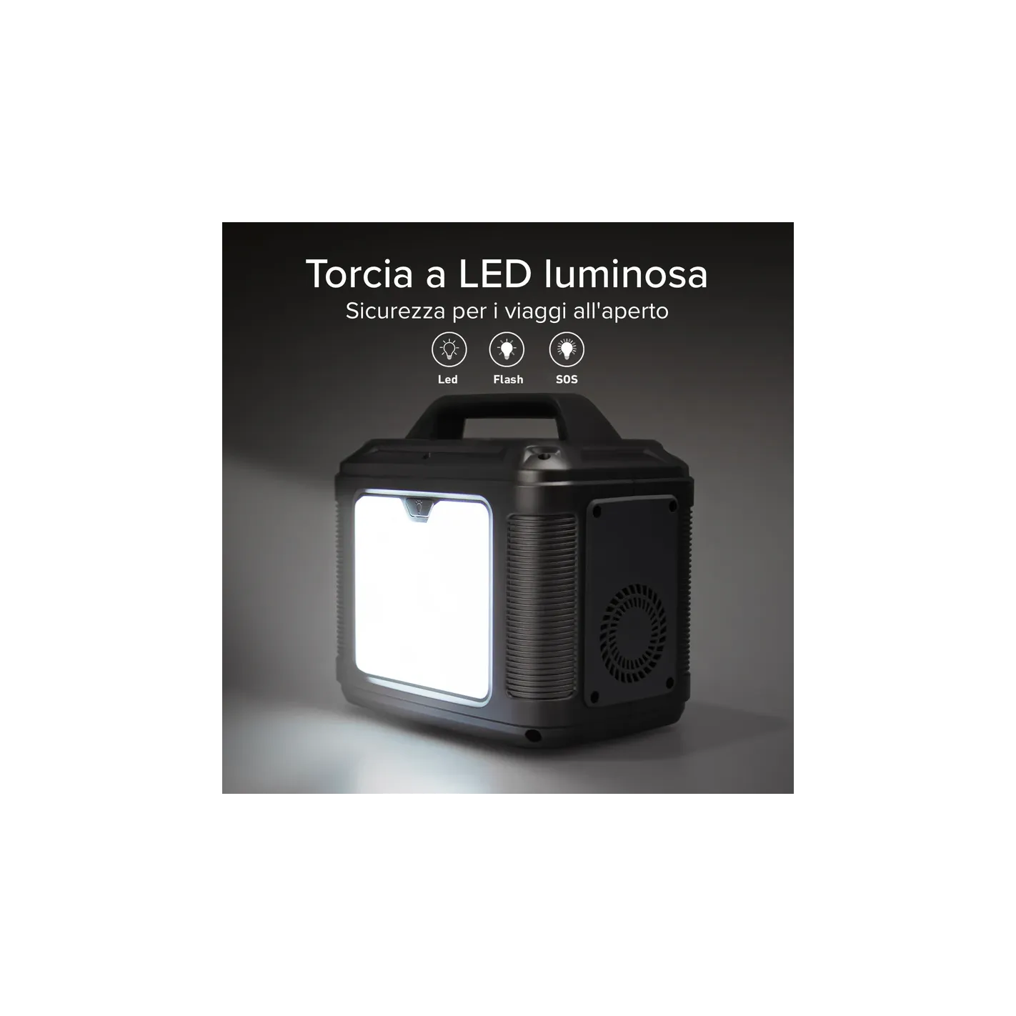 La stazione di ricarica è il compagno perfetto per lunghi viaggi. Riponila facilmente nel baule o nell'abitacolo del tuo veicolo grazie alla pratica maniglia integrata e alimenta per giorni i tuoi dispositivi Apple, Samsung, Huawei, Xiaomi, Oppo. Con i suoi 50.000 mAh, infatti, garantisce un'elevata autonomia. Il faretto LED integrato è utile per avere un'illuminazione notturna o per segnalare le emergenze.