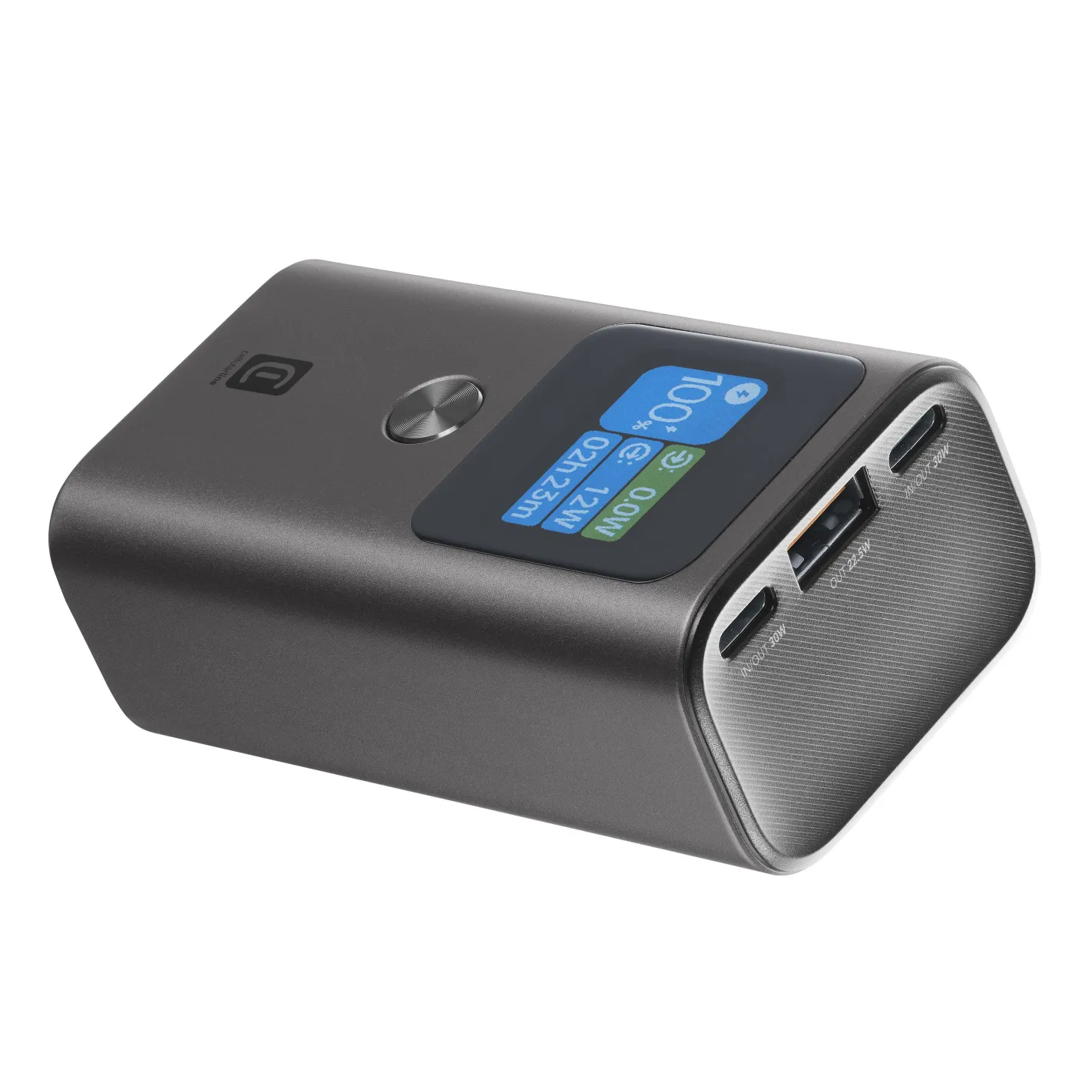 È dotato di due porte USB-C che erogano ciascuna 30W PD e di una porta USB che eroga 22.5W. Compatibile con qualsiasi dispositivo, fornisce fino a 30W di potenza e garantisce 72h extra di ricarica. È dotato di un LCD display che, oltre a mostrare l’input/output di carica in tempo reale, la percentuale e le ore di batteria rimanente, mostra diverse altre funzioni del Power Bank, ovvero sveglia, cronometro, countdown e termometro. Progettato per essere compatto e facilmente portatile, ULTRON 10000 è il compagno perfetto per le tue esigenze di ricarica in movimento.
