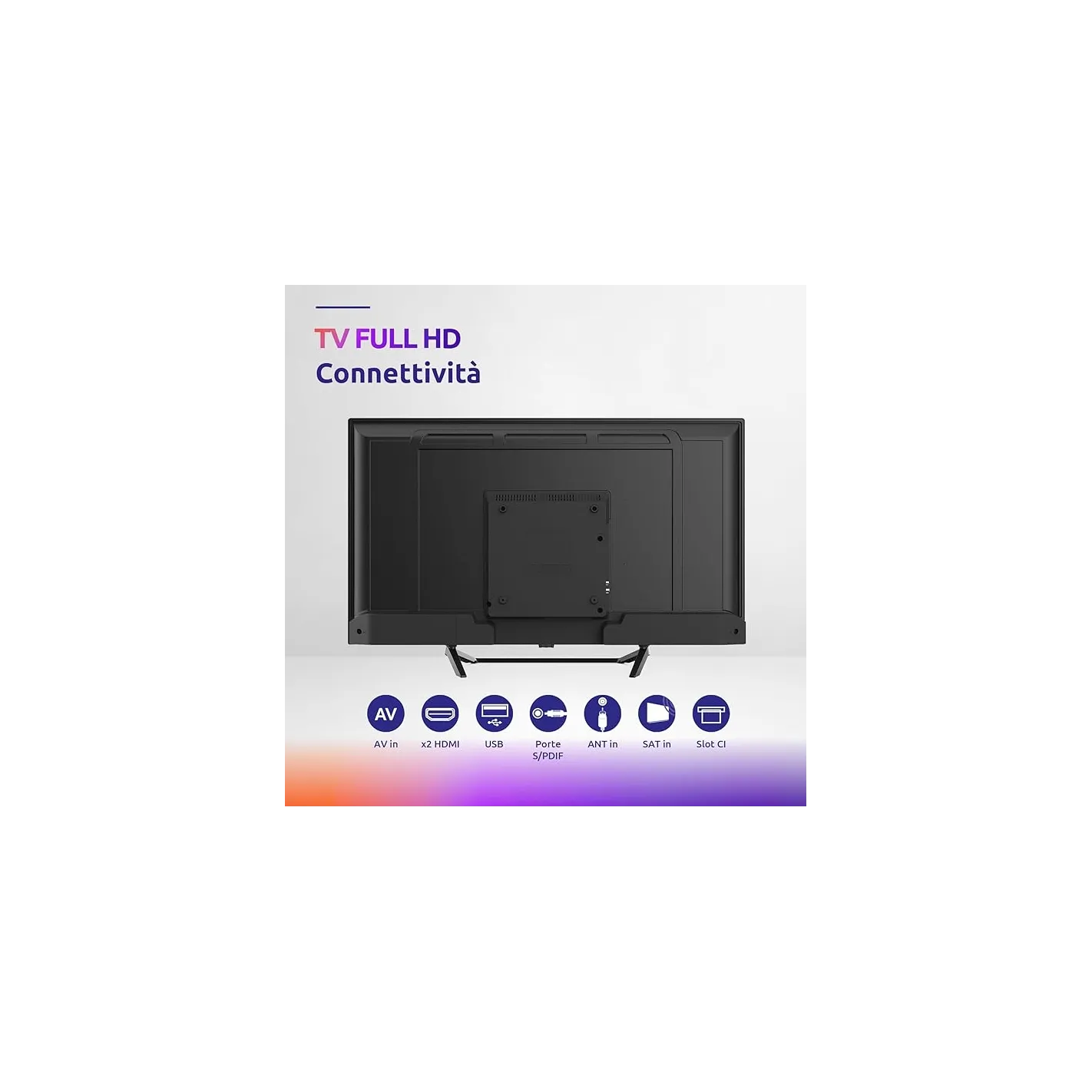 RISOLUZIONE FULL HD: questo televisore FHD con risoluzione 1920 x 1080p offre la migliore qualità d'immagine possibile a seconda del tipo di ricezione, con contrasti e colori ricchi e un rapporto di qualità d'immagine pari a 100.